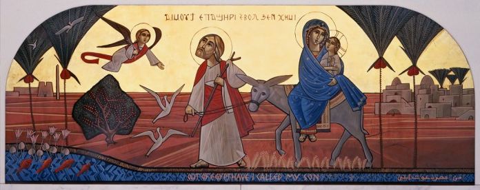 Also connected to the above is another trend that should also be mentioned here. It concerns the increasing use of very large architectural laser printed reproductions of icons and/or monumental mural paintings, instead of commissioning new works. At least some of these reproductions are of the work of Isaac Fanous and therefore beautiful and correct. Yet they stop the tradition from being practiced and passed on. This technique seems to have become a standard practice for a growing number of new Coptic churches in the US, especially in California where the trend started. Photographs of whole iconostases are printed on screens resembling roll-up exhibition display screens. I also recently saw a video of the installation of a large Pantocrator, approximately 4 to 5 metres high, being unrolled and stuck in the eastern sanctuary apse of a Coptic church, a process which took no more than a few hours, half a day at most, as opposed to the many days/weeks it takes to paint a real one. This I’m told was only a temporary measure, but some however see it as a shortcut to having instant iconography on the cheap. Actually not all that cheap, but somewhat cheaper than the real thing, but with only a tiny fraction of durability, 10s of years as opposed to 100s or even 1000s. It should be noted that such practices are the best way to ensure the disappearance of the icon-painting tradition, and reducing it to mere interior decoration, like some theatre stage design, i.e. it appears to be real, but it’s only an illusion, a make-belief or pastiche. Like all goods in our consumer society, this is throw-away iconography which of course, and contrary to church tradition, cannot be consecrated and anointed with holy chrism. Such practices, temporary or otherwise, represent yet another nail in the coffin, since iconography only thrives through demand and supply. Such trends if continued long enough, will easily spell the end of it.