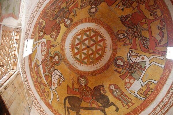 The 2 side domes contain 2 versions of the Primary Pattern also commonly known as the Tree of Life. The Primary Pattern is a very interesting subject that will be discussed in another post, as it really deserves a dedicated blog entry. It suffices to say that although it is found in numerous ancient cultures, it is particularly true in the case of both Ancient Egyptian and Coptic cultures. The idea of using the Primary Pattern was inspired by the famous dome of St Paul of Thebes Monastery in the Red Sea Desert.