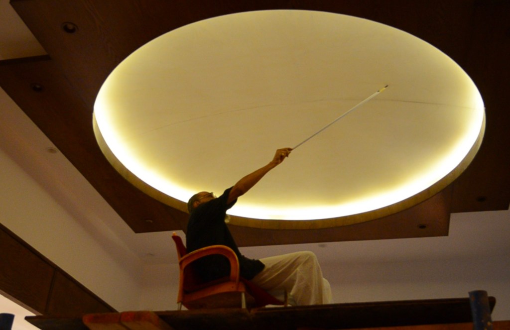 Digital print being prepared to be stuck on the ceiling in a Coptic Church, California